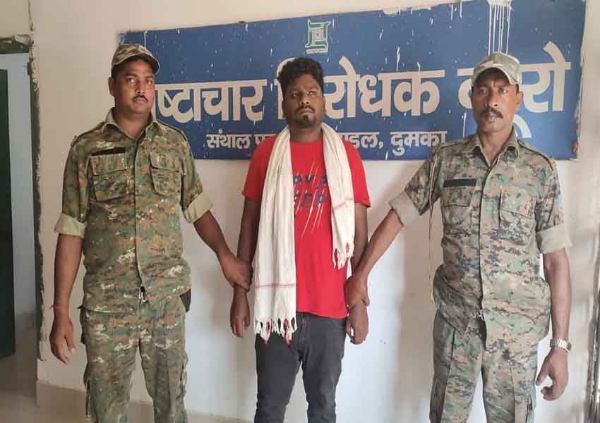 सोनू मरांडी को एसीबी की टीम अपने साथ दुमका ले गयी। मामला लेबर लाइसेंस बनाने के एवज में घूस लेने का है।