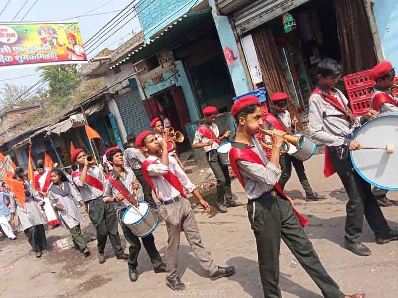 हिंदू नव वर्ष के शुभ अवसर पर अवध बिहारी शिशु विद्या मंदिर जरीडीह बाजार के प्रधानाचार्य कमलजीत सिंह एवं सचिव अनिल अग्रवाल के नेतृत्व में पथ संचलन के साथ भारत माता की भव्य झांकी निकाली गई।