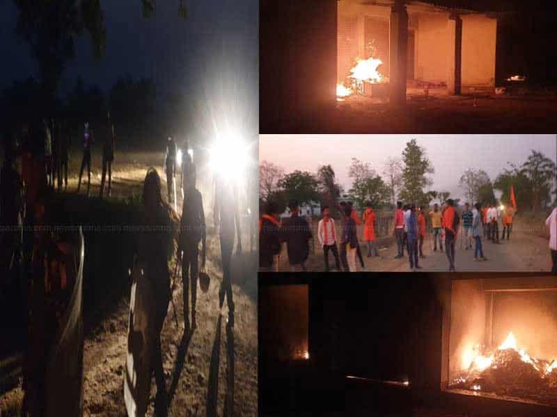 पथराव के बाद दो घरों में आग लगाने एवं मेला में पहुंचे ठेला, मिठाई दुकान एवं मेला में मौजूद एक पिक अप एवं 10 बाइक में आग लगा दिया गया। घटना के बाद पुलिस प्रशासन भोक्ता बगीचा में कैंप कर रही है।