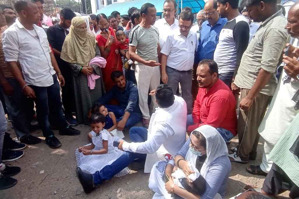 घटना के बाद सदर अस्पताल (Sadar Hospital) नए भवन के मुख्य द्वार पर फरहाद जबी पति तैयब आलम और छह महीने की बच्ची के साथ धरने पर बैठ गई। हालांकि, कुछ देर के बाद वो धरने पर से उठ गयी।
