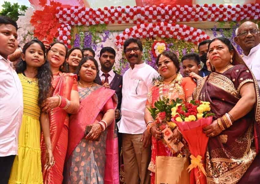 रांची: मुख्यमंत्री हेमंत सोरेन बुधवार को धनबाद में विधायक मथुरा प्रसाद महतो के पुत्र दिवाकर कुमार महतो के विवाह के अवसर पर आयोजित वर-वधू स्वागत समारोह (रिसेप्शन) में सम्मिलित हुए।