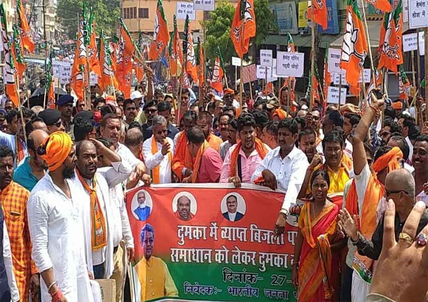 दुमका: बिजली, पानी में कटौती समेत तमाम मुद्दों को लेकर भाजपा ने बुधवार को यज्ञ मैदान से रैली निकालकर हेमंत सरकार का विरोध किया।