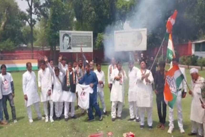 कांग्रेस हेडक्र्वाटर (Congress Headquarters) पर पार्टी कार्यकर्ताओं ने ढोल नगारे बजा कर जश्न मनाया।