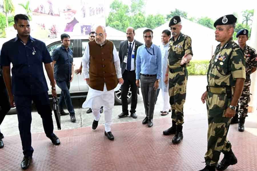 BSF के महानिदेशक पंकज कुमार सिंह, सशस्त्र सीमा बल (SSB) के महानिदेशक एस एल थाओसेन और स्थानीय गणमान्य लोगों ने केंद्रीय गृह मंत्री अमित शाह और केंद्रीय गृह राज्य मंत्री नित्यानंद राय का स्वागत किया।