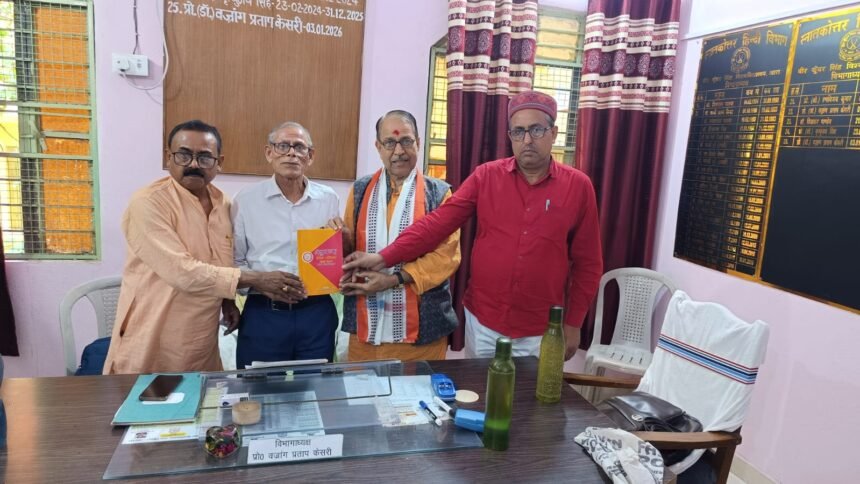 अपने विचारों को मजबूत करने के लिए उन्होंने कालिदास के मालविकाग्निमित्रम् का उदाहरण दिया और समझाया कि हर पुरानी चीज अच्छी नहीं होती और हर नई चीज खराब नहीं होती। समझदार व्यक्ति हर बात को परखकर ही स्वीकार करता है, जबकि मूर्ख बिना सोचे-समझे दूसरों की बात मान लेते हैं। इसलिए शोध में आंख मूंदकर किसी बात को स्वीकार करने की कोई जगह नहीं है। इस मौके पर डॉ. राजेंद्र प्रसाद ने भी अपने विचार रखे। उन्होंने कहा कि शोध में ईमानदारी सबसे जरूरी है, साथ ही गुरु के प्रति आस्था और विश्वास भी होना चाहिए। उन्होंने तुलसीदास की पंक्ति-“गुरु बिनु भव निधि तरै न कोई” का उल्लेख करते हुए गुरु के महत्व को रेखांकित किया। कार्यक्रम में विभाग के शिक्षक डॉ. रण विजय कुमार, डॉ. नवनीत कुमार, डॉ. नीलांबुज सिंह, डॉ. शिखा सिंह और एस.पी. जैन कॉलेज की हिंदी शिक्षिका डॉ. आभा कुमारी की उपस्थिति ने आयोजन को और खास बना दिया।