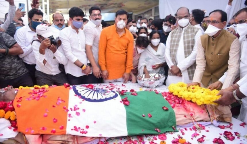 मुख्यमंत्री शिवराज सिंह ने दिवंगत नेता स्वर्गीय कैलाश सारंग का पार्थिव शरीर स्टेट हैंगर भोपाल पहुंचने पर श्रद्धांजलि अर्पित की।
