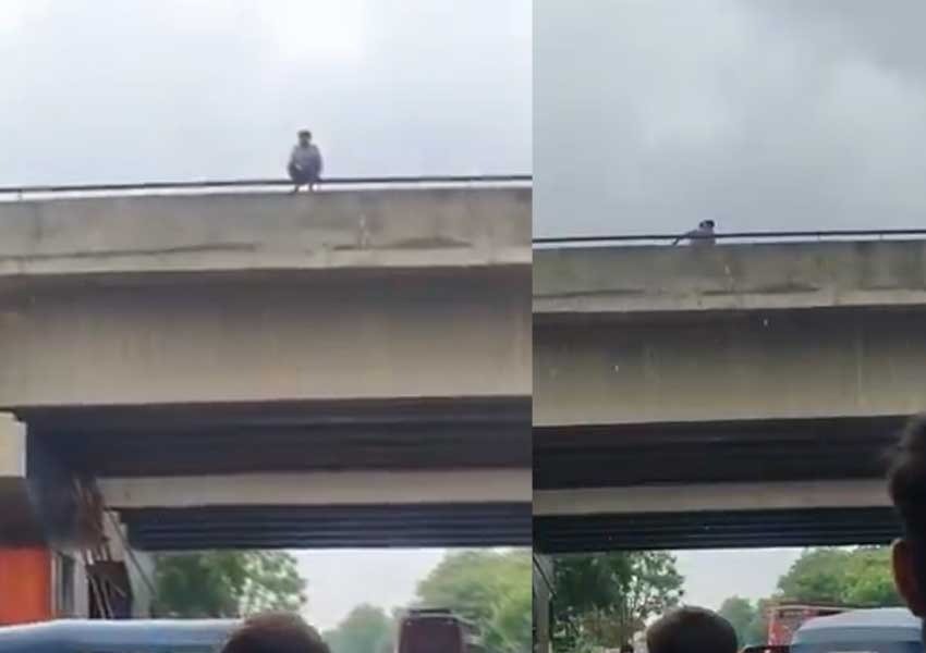 VIDEO : युवक ने पत्नी से विवाद के बाद फ्लाईओवर से कूदने की कोशिश की, पुलिस ने बचाया