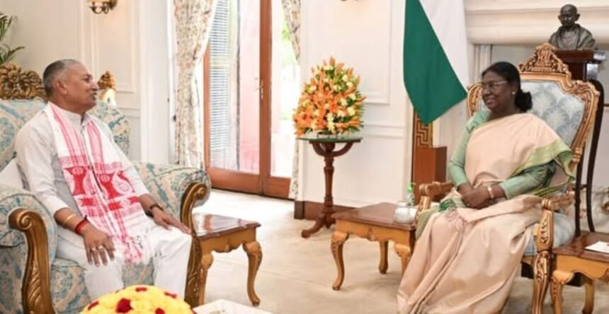 रांची : चतरा से भाजपा सांसद कालीचरण सिंह सोमवार को नई दिल्ली स्थित राष्ट्रपति भवन में राष्ट्रपति द्रौपदी मुर्मू से मिले। इस शिष्टाचार मुलाकात में उन्होंने राष्ट्रपति को मां भद्रकाली और मां कौलेश्वरी मंदिर में पधारने का आमंत्रण दिया। राष्ट्रपति द्रौपदी मुर्मू ने उनका आमंत्रण स्वीकार लिया और कहा कि वे वहां आयेंगी।