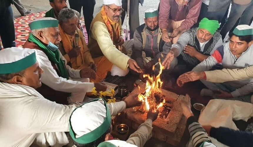 गाजीपुर बॉर्डर पर किसानों ने सरकार की सद्बुद्धि के लिए किया हवन