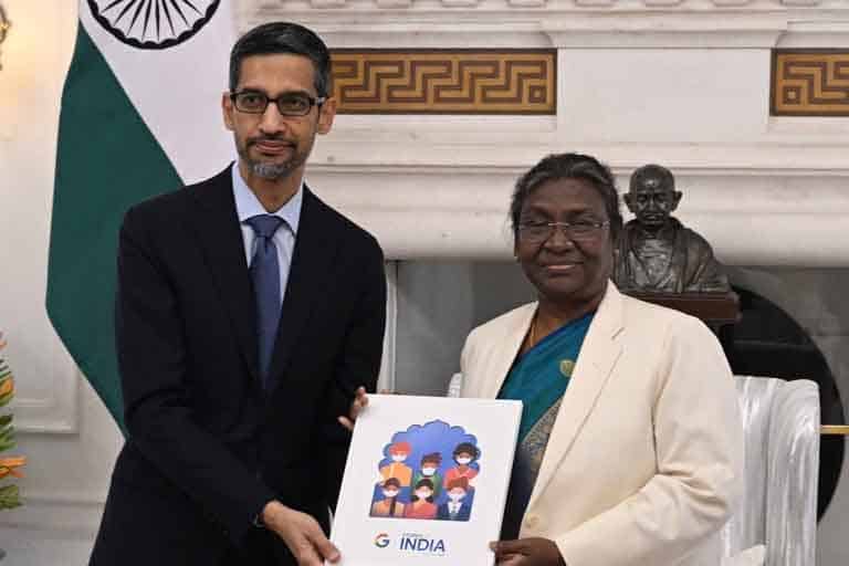 नई दिल्ली: Google And Alphabet के सीईओ सुंदर पिचाई (CEO Sundar Pichai) ने सोमवार को राष्ट्रपति द्रौपदी मुर्मू (Draupadi Murmu) से राष्ट्रपति भवन में मुलाकात की।