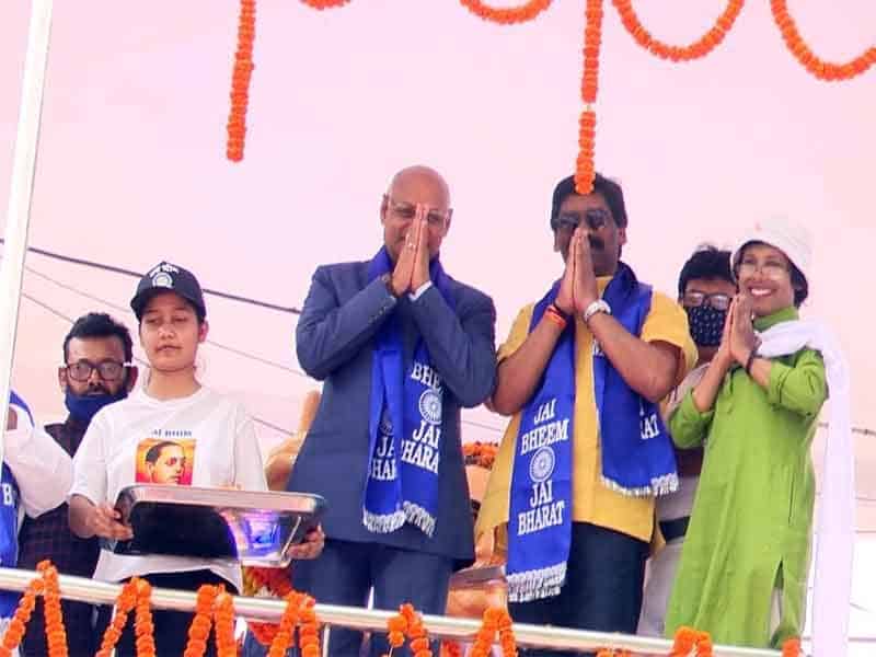 राज्यपाल रमेश बैस और मुख्यमंत्री हेमंत सोरेन ने गुरुवार को हाई कोर्ट के समीप स्थित अम्बेडकर चौक पर बनी बाबा साहब की प्रतिमा पर जाकर उन्हें श्रद्धा-सुमन अर्पित कर नमन किया।