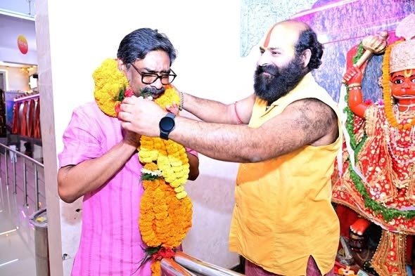 मुख्यमंत्री हेमंत सोरेन ने तपोवन मंदिर में की पूजा-अर्चना
