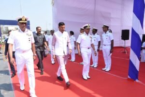 ऐतिहासिक नौकायन पोत आइएनएसवी कौंडिन्या के ध्वजारोहण समारोह में मुख्य अतिथि के रूप में शामिल हुए केंद्रीय रक्षा राज्यमंत्री