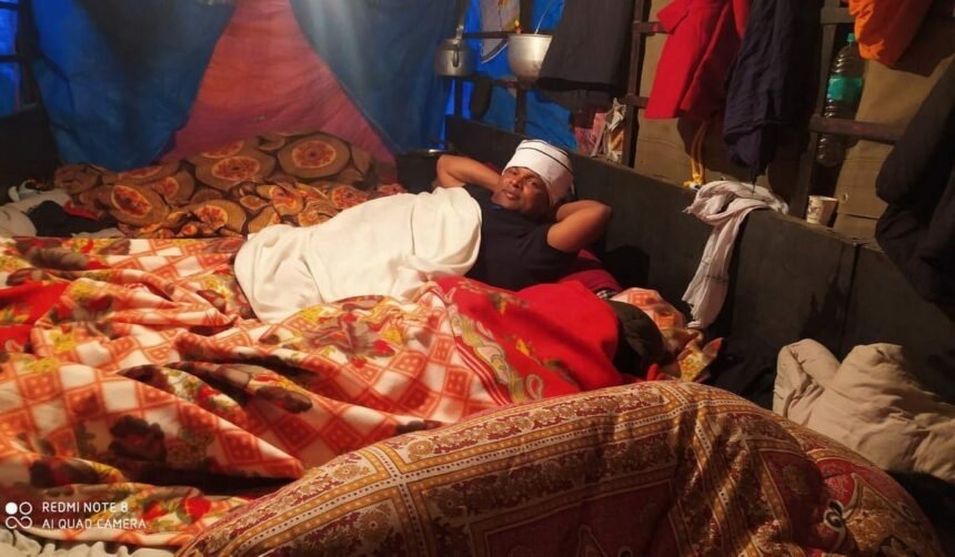 वहीं टेंट में बिछाये गये बिस्तर पर ही सोकर कुछ देर के लिए नींद भी पूरी की।