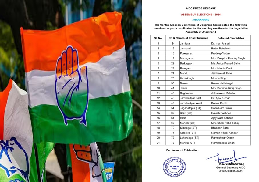 Congress First List : सोमवार की देर रात में Jharkhand Assembly Election के पहले चरण के लिए Congress ने 21 सीटों के लिए अपने प्रत्याशियों की सूची जारी कर दी। इसमें 15 सिटिंग विधायकों की सीटें हैं। लेकिन, जेल में बंद पूर्व मंत्री Alamgir Alam की सीट पर अभी कैंडिडेट तय नहीं किया गया है।