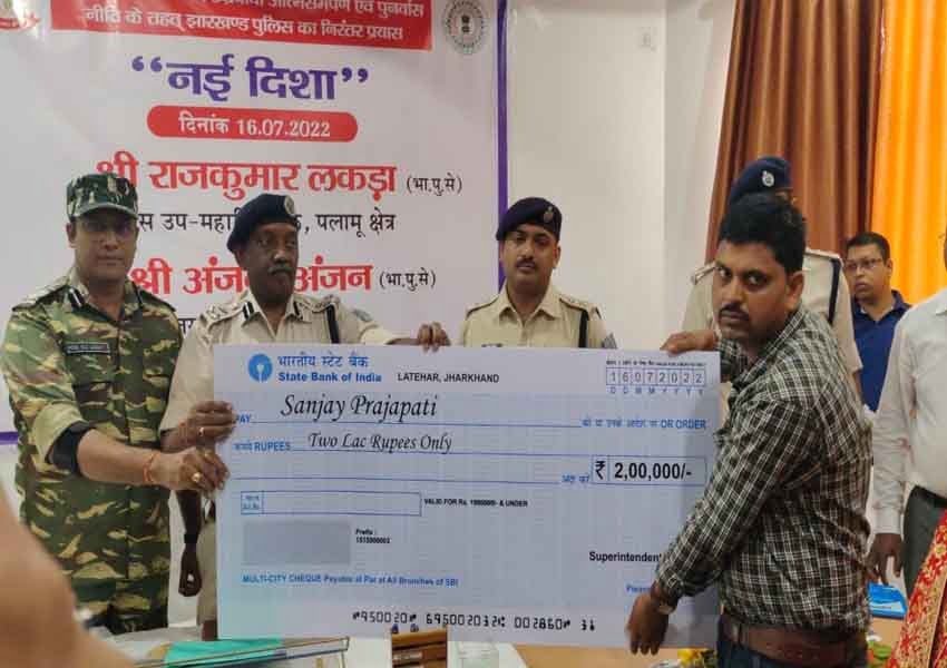 आत्मसमर्पण करने पर पलामू प्रमंडल के DIG राजकुमार लकड़ा ,लातेहार एसपी अंजनी अंजन और CRPF 214 बटालियन के कमांडेंट ऋषि राज सहाय ने उसे बुके देकर सम्मानित किया।