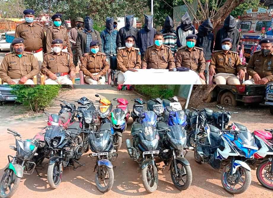 लोहरदगा पुलिस ने बाइक चोर गिरोह का किया उद्भेदन, 8 गिरफ्तार, 21 बाइक बरामद