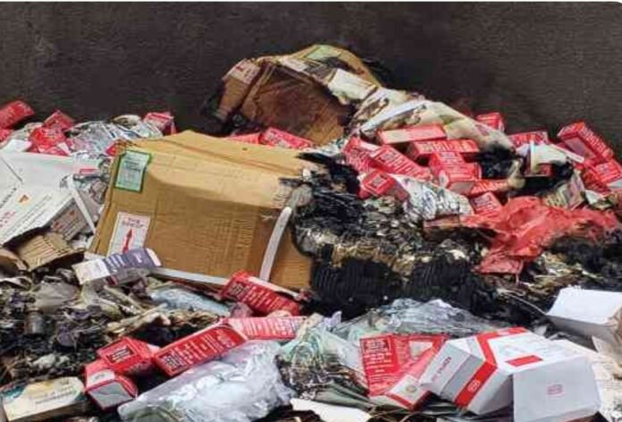अस्पताल के दौरे पर देखा गया कि परिसर में 10 से ज्यादा कार्टन जले पड़े थे, जिनमें से कई अधजले थे और उन पर सील भी लगी हुई थी। आशंका है कि इनमें एक्सपायरी दवाएं भी शामिल थीं, जो बड़ी संख्या में गोदाम में पड़ी रह गईं।