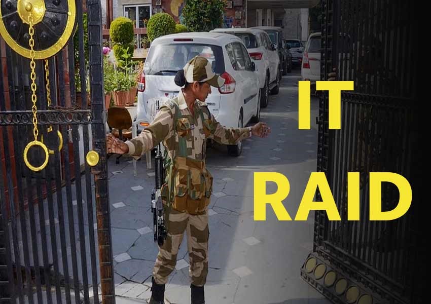 अंदर से किसी को बाहर जाने की अनुमति है। इनकम टैक्स ऑफिसर्स दस्तावेज खंगाल रहे हैं।