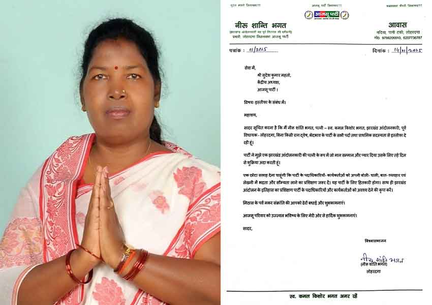 बताते चलें नीरू शांति भगत 2019 के विधानसभा चुनाव में लोहरदगा सीट से आजसू की उम्मीदवार थीं। उनका यह इस्तीफा पार्टी के लिए एक बड़ा झटका माना जा रहा है।