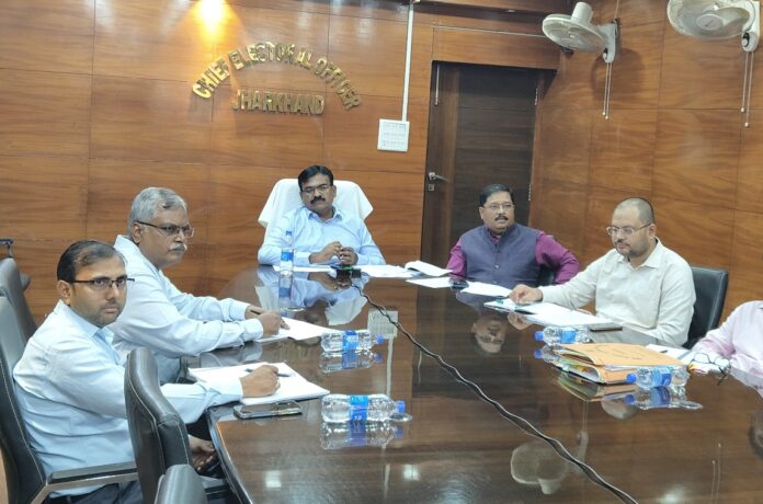 इस अवसर पर संयुक्त मुख्य निर्वाचन पदाधिकारी सुबोध कुमार, उप निर्वाचन पदाधिकारी धीरज ठाकुर, अवर निर्वाचन पदाधिकारी सुनील कुमार सहित सभी जिलों के पदाधिकारी ऑनलाइन माध्यम से बैठक में शामिल हुए।