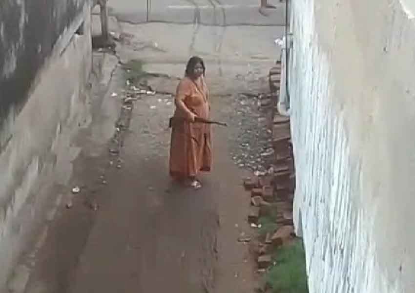 सोमवार को उनकी एक पौत्रवधु विनीता सिंह उसी विवाद को लेकर हाथ में रायफल लेकर सड़क पर उतर गई और जमकर हंगामा मचाया।