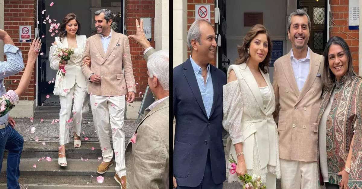 वह इंस्टाग्राम पर गईं, जहां उन्होंने शादी से एक तस्वीर साझा की। कट आउट स्लीव्स वाले सफेद पैंटसूट में कनिका ड्रॉप-डेड गॉर्जियस लग रही थीं। गौतम नीली शर्ट, सफेद पैंट और भूरे रंग के कोट में अच्छे लग रहे थे।