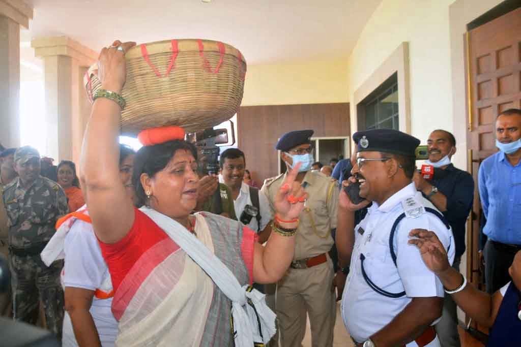 BJP विधायक नीरा यादव ने कहा कि पूरे राज्य में अकाल की स्थिति है और सरकार कान में तेल डालकर सोई हुई है। विरोध में नीरा यादव ने BJP विधायकों के बीच धुस्का बर्रा वितरित किया।