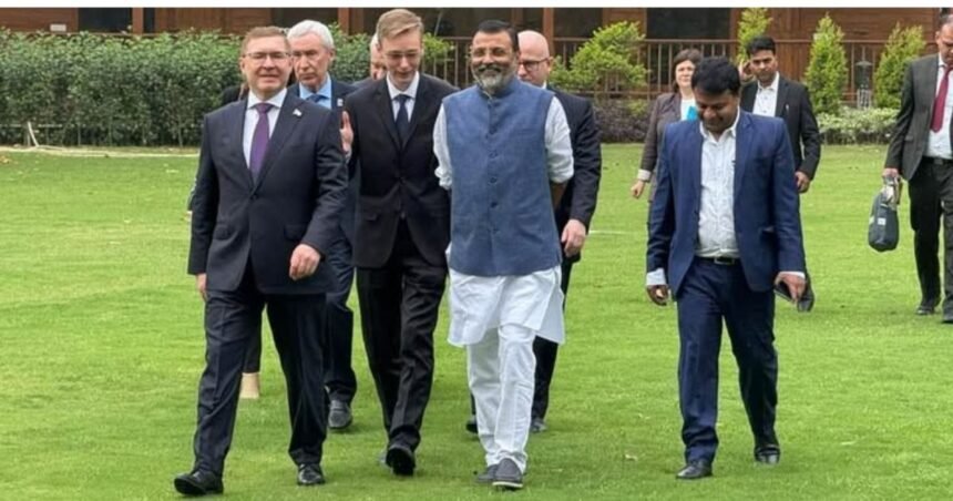 नई दिल्ली : गोड्डा से भाजपा सांसद डॉ निशिकांत दुबे ने शुक्रवार को रुस के सांसदों के प्रतिनिधिमंडल का अपने दिल्ली स्थित आवास पर स्वागत किया। श्री दुबे भारत रुस संसदीय समिति के अध्यक्ष हैं। बताया जा रहा है कि यह दौरा दोनों देशों के बीच संसदीय सहयोग, आर्थिक साझेदारी और सांस्कृतिक संबंधों को और मजबूत करने के उद्देश्य से आयोजित किया गया है। स्वागत के दौरान डॉ. दुबे ने भारत और रूस के बीच लंबे समय से चले आ रहे मैत्रीपूर्ण संबंधों का उल्लेख किया और इसे और आगे बढ़ाने की जरूरत पर जोर दिया।