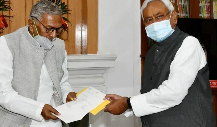 कैबिनेट की बैठक में विधानसभा भंग करने की सिफारिश के बाद उन्होंने अपना त्यागपत्र बिहार के राज्यपाल फागू चौहान को दिया है।
