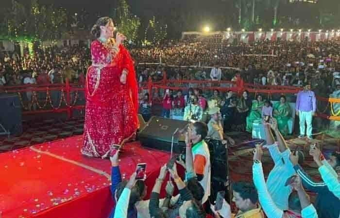 बताया जा रहा है कि बदलापुर महोत्सव (Badlapur Mahotsav) में स्टेज पर अक्षरा सिंह अपने ही गानों पर डांस कर रही थी।