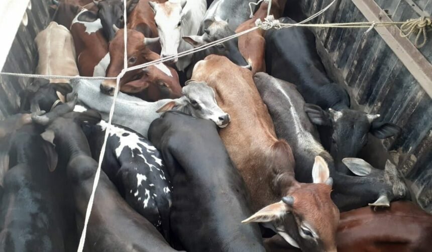 52 पशुओं में बैल और बछड़ा शामिल है। थाना प्रभारी मिसिल शरण ने मंगलवार को बताया कि मामले में चालक सहित 4 लोगों को गिरफ्तार किया गया है।
