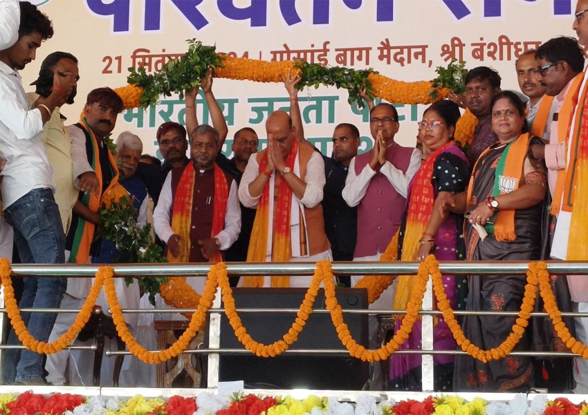 Rajnath Singh launched Parivartan Yatra: गढ़वा जिले के नगरउंटारी में रक्षा मंत्री राजनाथ सिंह (Rajnath Singh) ने आज शनिवार को परिवर्तन यात्रा का शुभारंभ किया साथ ही जनसभा को भी संबोधित किया।