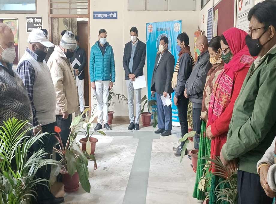 इस अवसर पर उपायुक्त छवि रंजन सहित समाहरणालय के पदाधिकारियों एवं कर्मियों ने दिवंगत आत्मा की शांति के लिए दो मिनट का मौन रख कर भावभीनी श्रद्धांजलि दी।