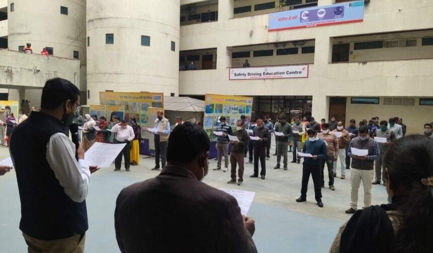 समाहरणालय ब्लॉक ए परिसर में उपायुक्त छवि रंजन ने पदाधिकारियों और कर्मियों को संविधान के अनुपालन की शपथ दिलायी।