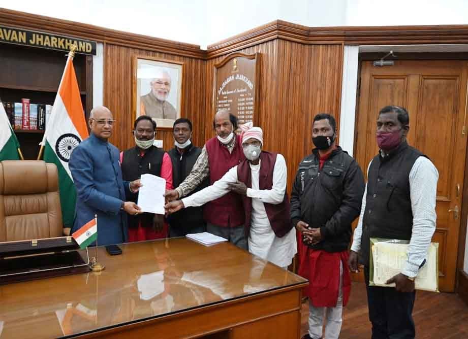 मंच के संदीप उरांव के नेतृत्व में पहुंचे प्रतिनिधिमंडल ने राज्यपाल को झारखंड विधान सभा से पारित झारखंड भीड़ हिंसा एवं मॉब लिंचिंग निवारण विधेयक-2021 पर रोक लगाने के लिए ज्ञापन सौंपा।