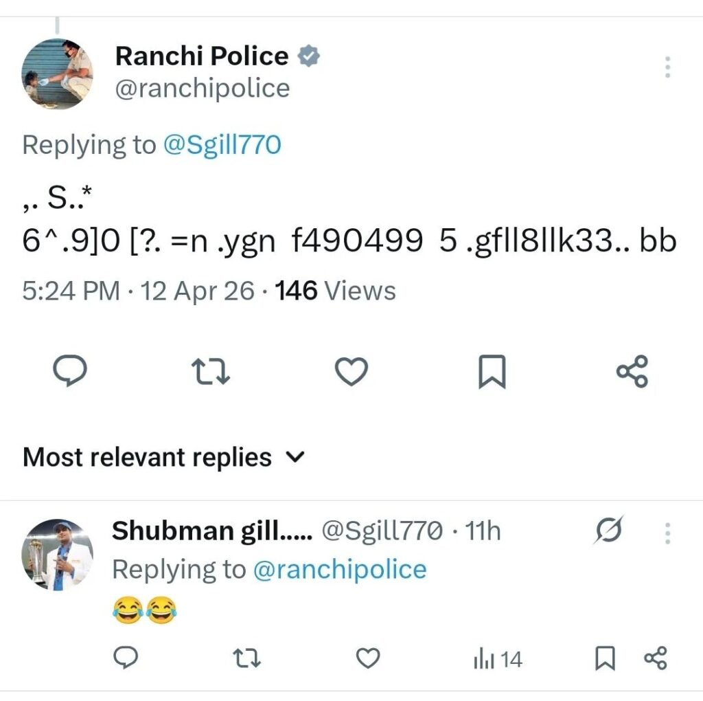 रांची: रांची पुलिस का X (ट्विटर) अकाउंट इन दिनों जबरदस्त चर्चा में है, लेकिन इस बार वजह कुछ अलग है। IPL मैच के दौरान किया गया एक “अजीबो-गरीब” रिप्लाई सोशल मीडिया पर तेजी से वायरल हो गया है। दरअसल, मैच के दौरान एक यूज़र के पोस्ट पर रांची पुलिस के आधिकारिक X अकाउंट से ऐसा जवाब दिया गया, जिसे देखकर लोग हैरान भी रह गए और हंसी भी नहीं रोक पाए। इस रिप्लाई का अंदाज़ बाकी सरकारी अकाउंट्स से बिल्कुल अलग नजर आया। रांची पुलिस के अकाउंट से जो रिप्लाई किया गया, वह कुछ इस तरह था-