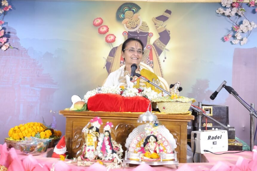 उन्होंने कहा कि सुनीति का मार्ग प्रारंभ में कठिन अवश्य लगता है, लेकिन उसका फल स्थायी और कल्याणकारी होता है। वहीं, सुरुचि का मार्ग शीघ्र सुख तो देता है, किंतु उसका प्रभाव अल्पकालिक होता है। इस संदर्भ में उन्होंने ध्रुव महाराज की कथा का उल्लेख करते हुए बताया कि ध्रुव ने सुनीति का मार्ग अपनाया, प्रारंभ में कष्ट सहा, लेकिन अंततः उन्हें भगवान का साक्षात्कार प्राप्त हुआ।कथा के उत्तरार्ध में भगवान श्रीकृष्ण के जन्म का मार्मिक और भावपूर्ण वर्णन किया गया। मां चैतन्य मीरा ने बताया कि कंस जैसे अत्याचारी का अंत करने, पृथ्वी का भार कम करने तथा ऋषि-मुनियों के संताप को दूर करने के लिए भगवान श्रीकृष्ण ने वासुदेव और माता देवकी के घर जन्म लिया। उन्होंने वासुदेव द्वारा बालक कृष्ण को यमुना नदी पार कर नंद बाबा और यशोदा मैया के पास पहुंचाने की लीला का सजीव चित्रण किया, जिसे सुनकर पूरा पंडाल भावविभोर हो उठा।