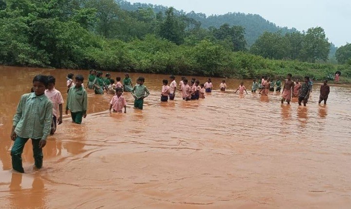 Saranda News: पश्चिम सिंहभूम के नक्सल प्रभावित सारंडा क्षेत्र के गंगदा पंचायत के लेम्बरा गांव से दिल दहला देने वाली तस्वीर सामने आई है। यहां के दर्जनों बच्चे हर दिन अपनी जान जोखिम में डालकर उफनती कोयना नदी को बिना नाव, पुल या किसी सुरक्षा के पार कर स्कूल जाते हैं। भारी बारिश के कारण नदी का जलस्तर खतरनाक हो गया है, जिसने बच्चों की पढ़ाई के सफर को मौत का रास्ता बना दिया है।
