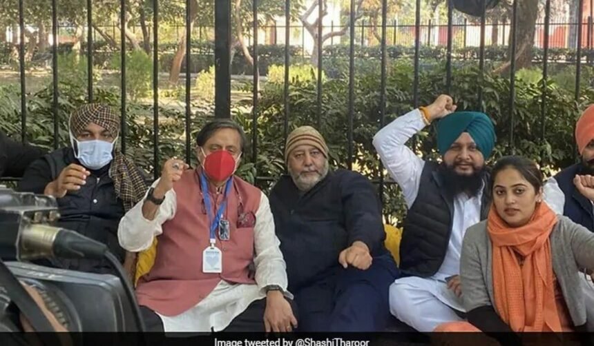 शशि थरूर ने ट्वीट किया, मेरे सांसद सहयोगियों जसबीर गिल और गुरजीत एस औजला के साथ उनके किसान प्रदर्शन के समर्थन में और संसद के शीतकालीन सत्र के मांग को लेकर उनके धरने के साथ।