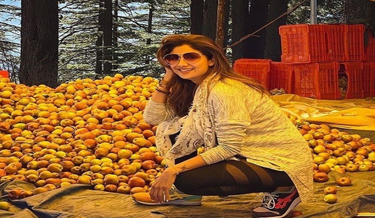 इस तस्वीर को शिल्पा ने मनाली में सेब के ढेर के पास क्लिक करवाया है।