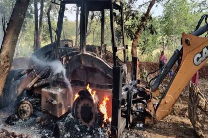 लेवी नहीं देने पर निर्माण कार्य में लगे JCB को नक्सलियों ने किया आग के हवाले