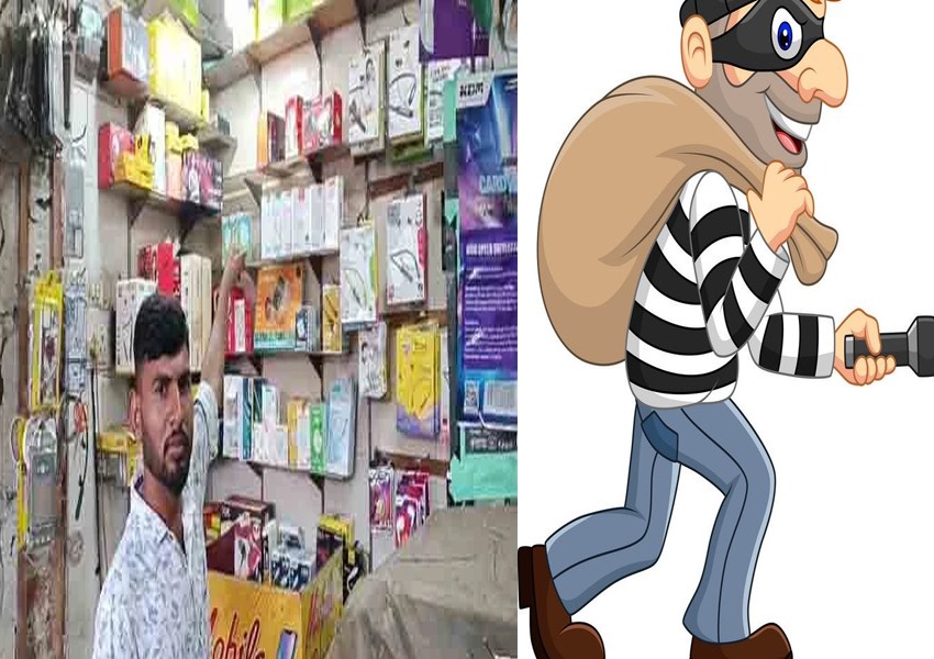 सोमवार की देर रात चोर दुकान के शटर का ताला तोड़कर दुकान के अंदर घुसे और मोबाइल, कैश सहित अन्य सामान लेकर फरार हो गये।