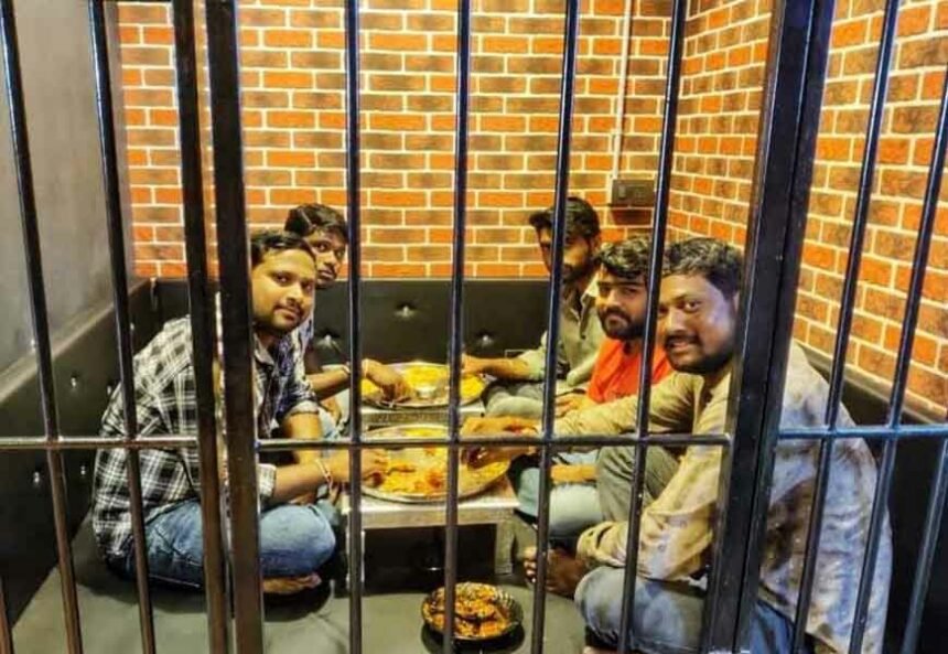 तेलंगाना के मैत्री वनम इलाके में स्थित इस रेस्टोरेंट में लोग खुद को कैद करवाने के लिए खुशी-खुशी पहुंच रहे हैं।
